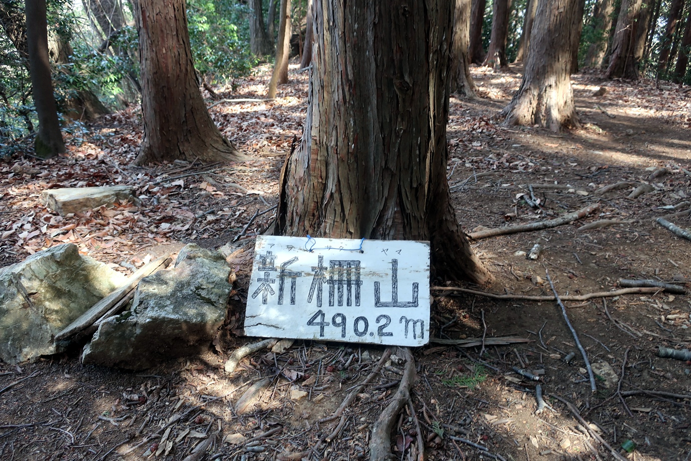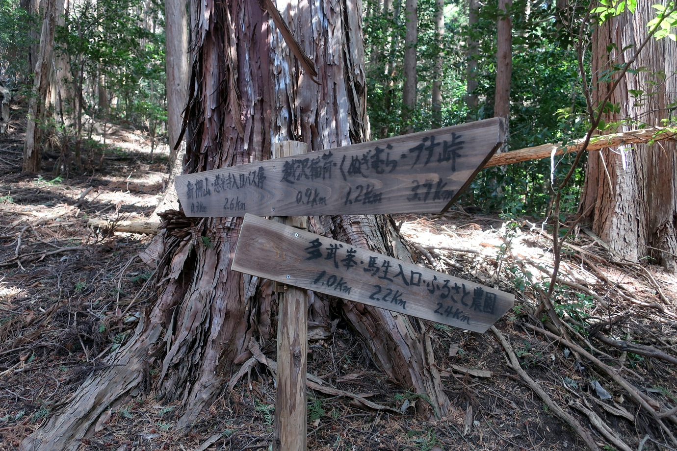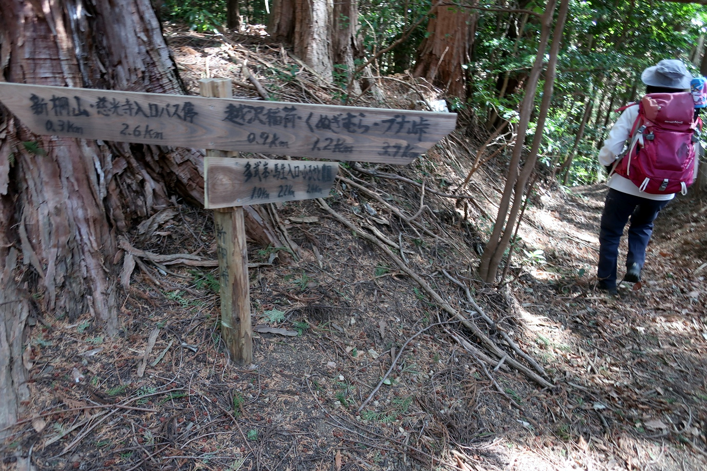 くぬぎむら体験交流館→越沢稲荷の大スギ→新柵峠→新柵山→新柵峠→日向根バス停→くぬぎむら体験交流館