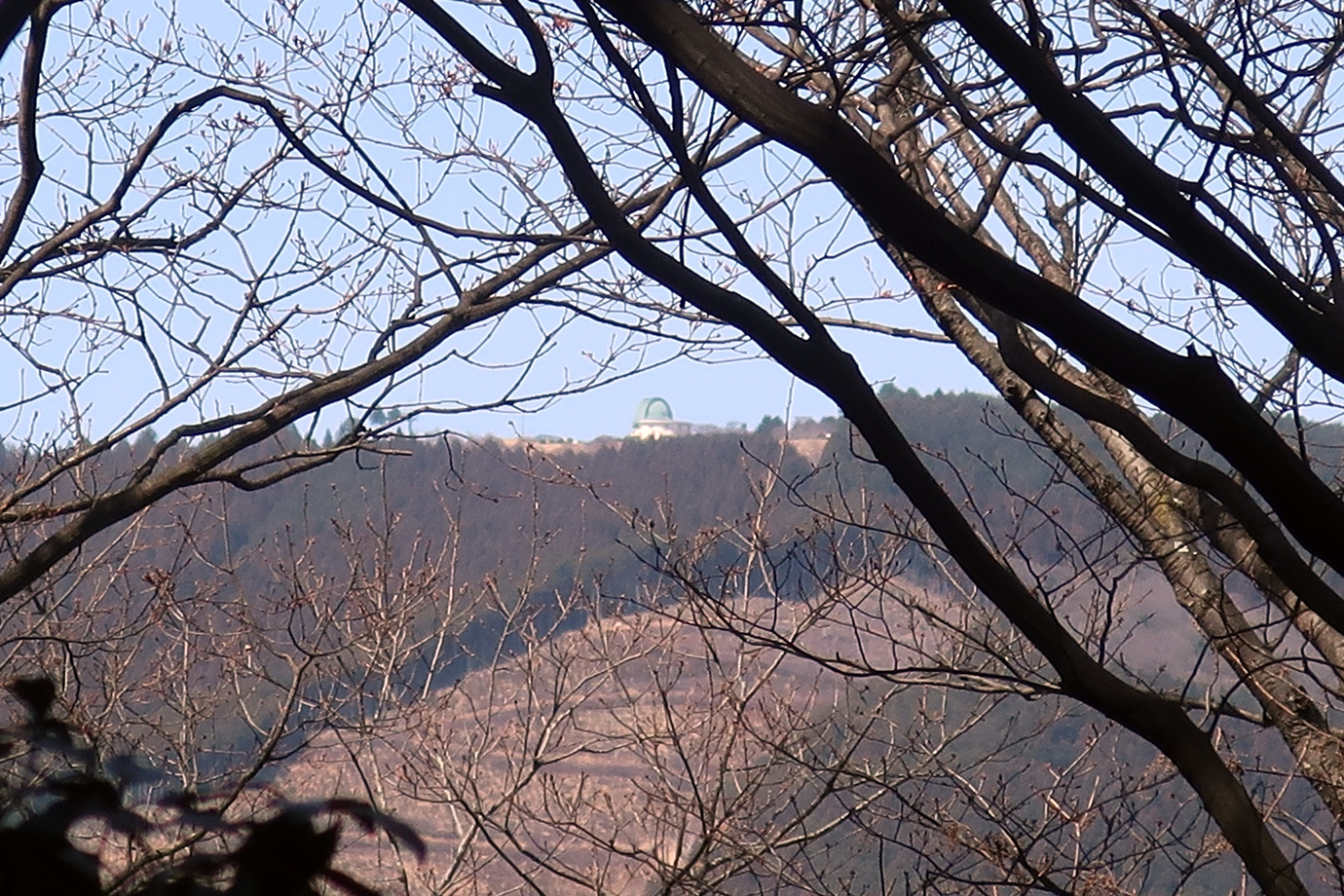 眺望はほぼないですが、枝の隙間から堂平山の天文台が見えました。