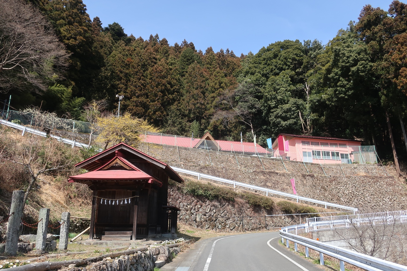 駐車場から坂を少し上がり、山方面へ入ります。