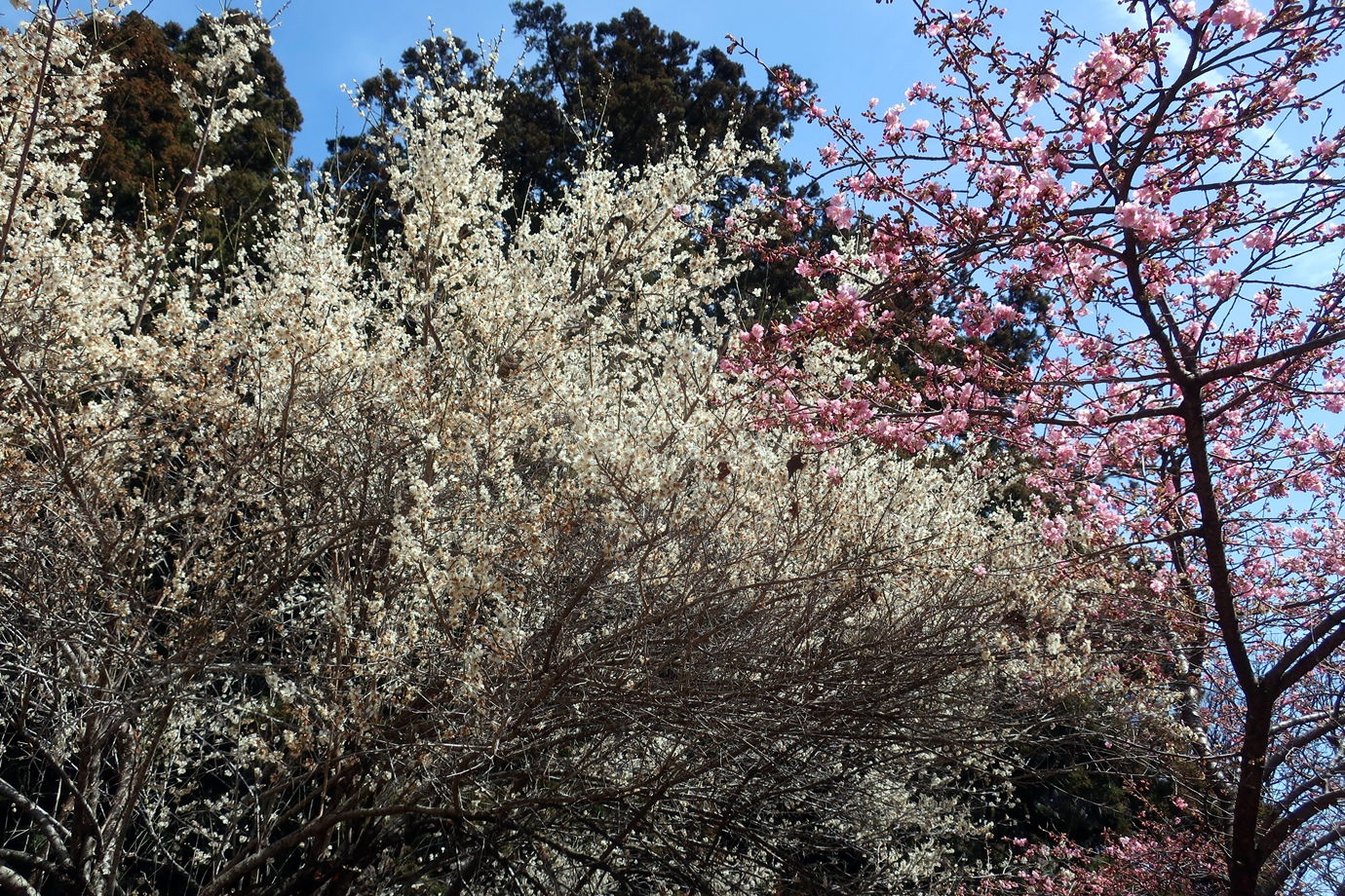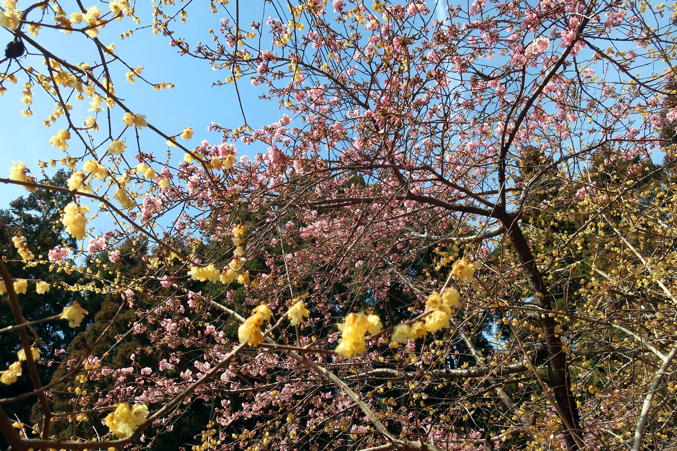 桜と蝋梅のコラボ。