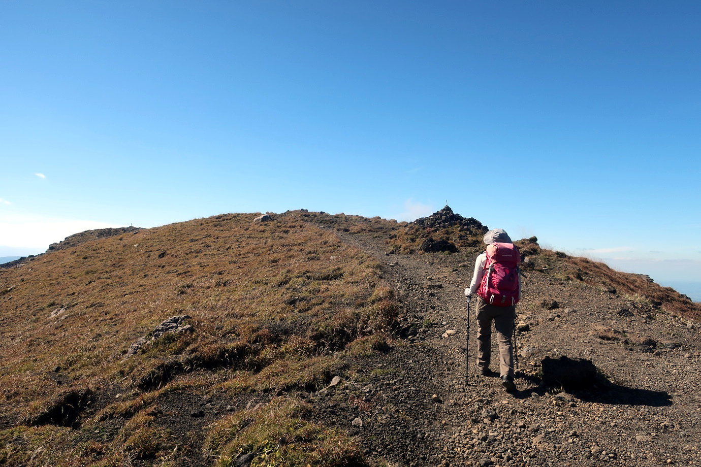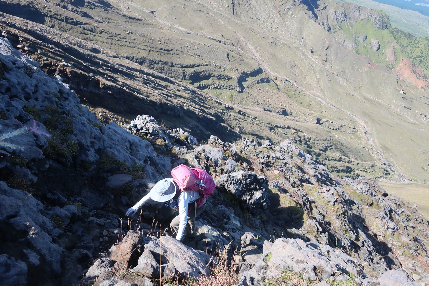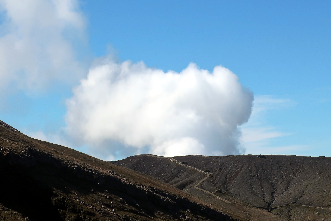 しかし、中間点を過ぎたあたりから大火口からと思われる噴煙が視界に。元気も出てきます。