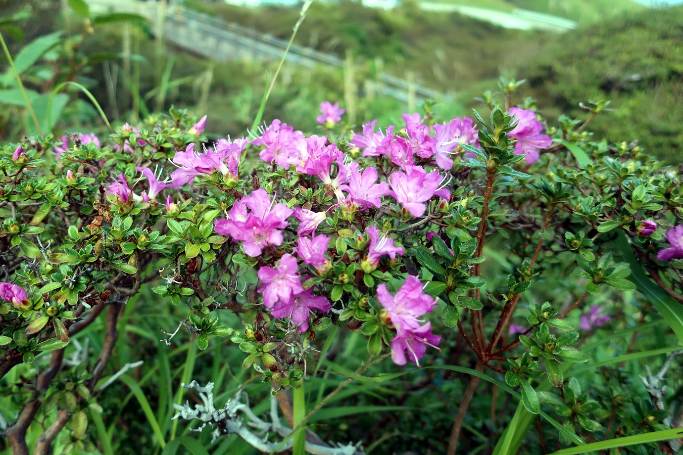 季節外れのミヤマキリシマ。阿蘇は5月上旬から中旬にかけて約5万株のミヤマキリシマが咲くことで有名。登山口の名「仙酔峡」は仙人がその花の香りに酔ったという伝説から名付けられたほど。