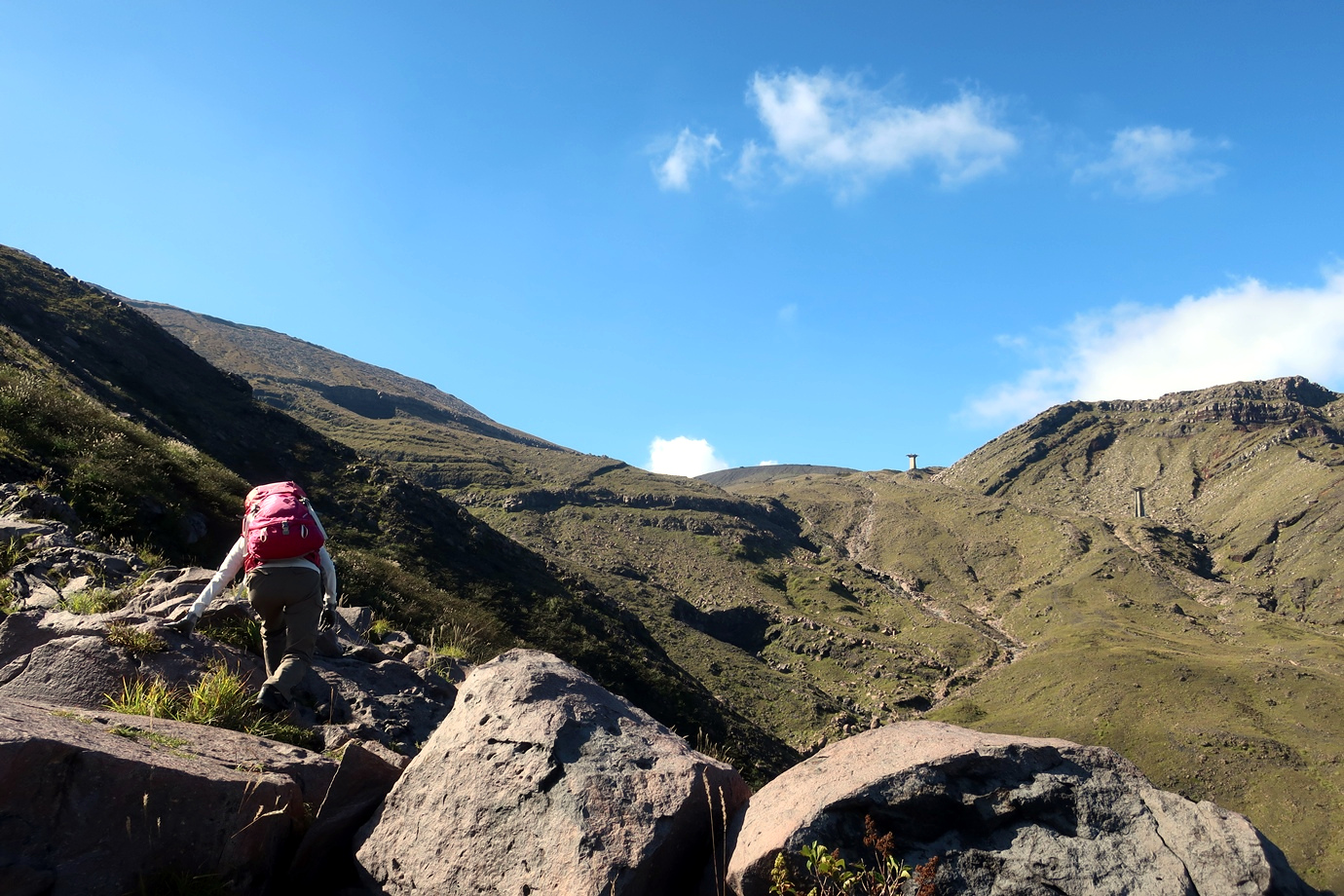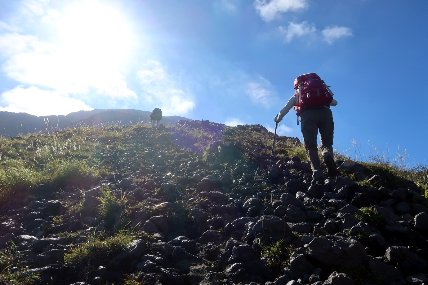 尾根ルートは急登、そして岩場の連続で神経を使います。慎重に行けば大丈夫ですが、気を抜けば滑落の危険も。岩場が苦手な人は今回のコースの下りルートをピストンするのがいいかも。