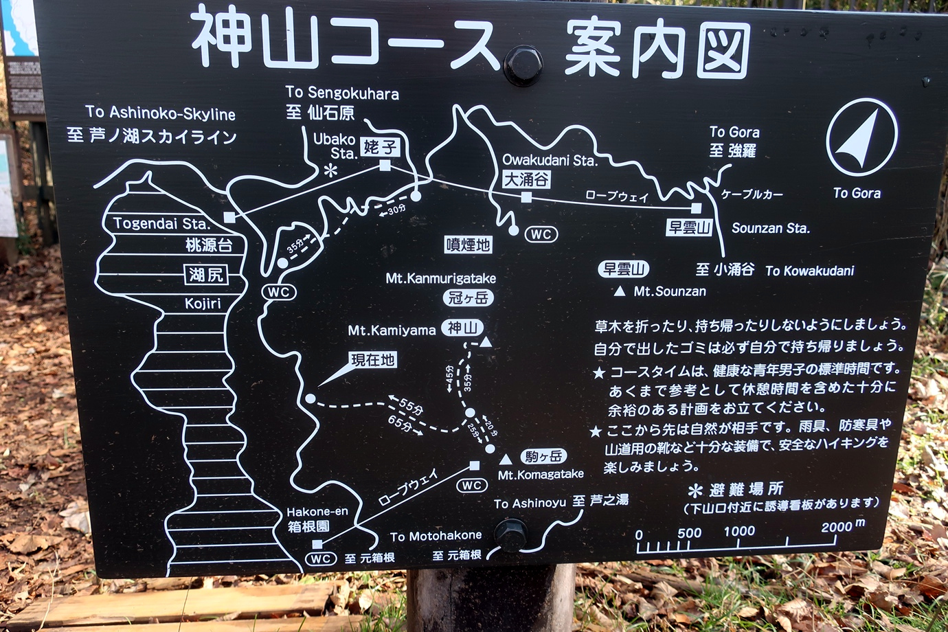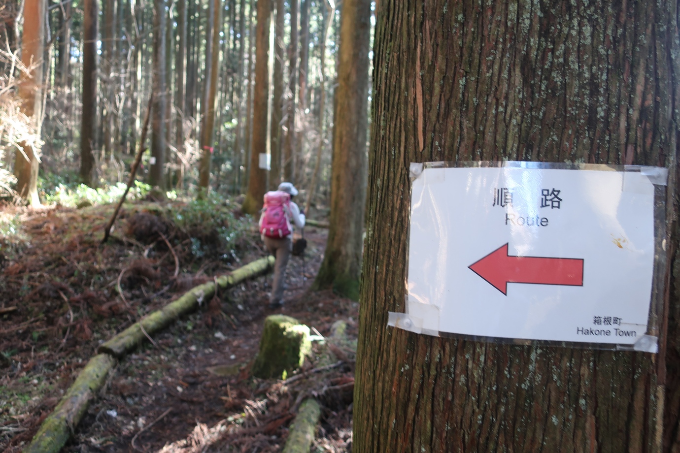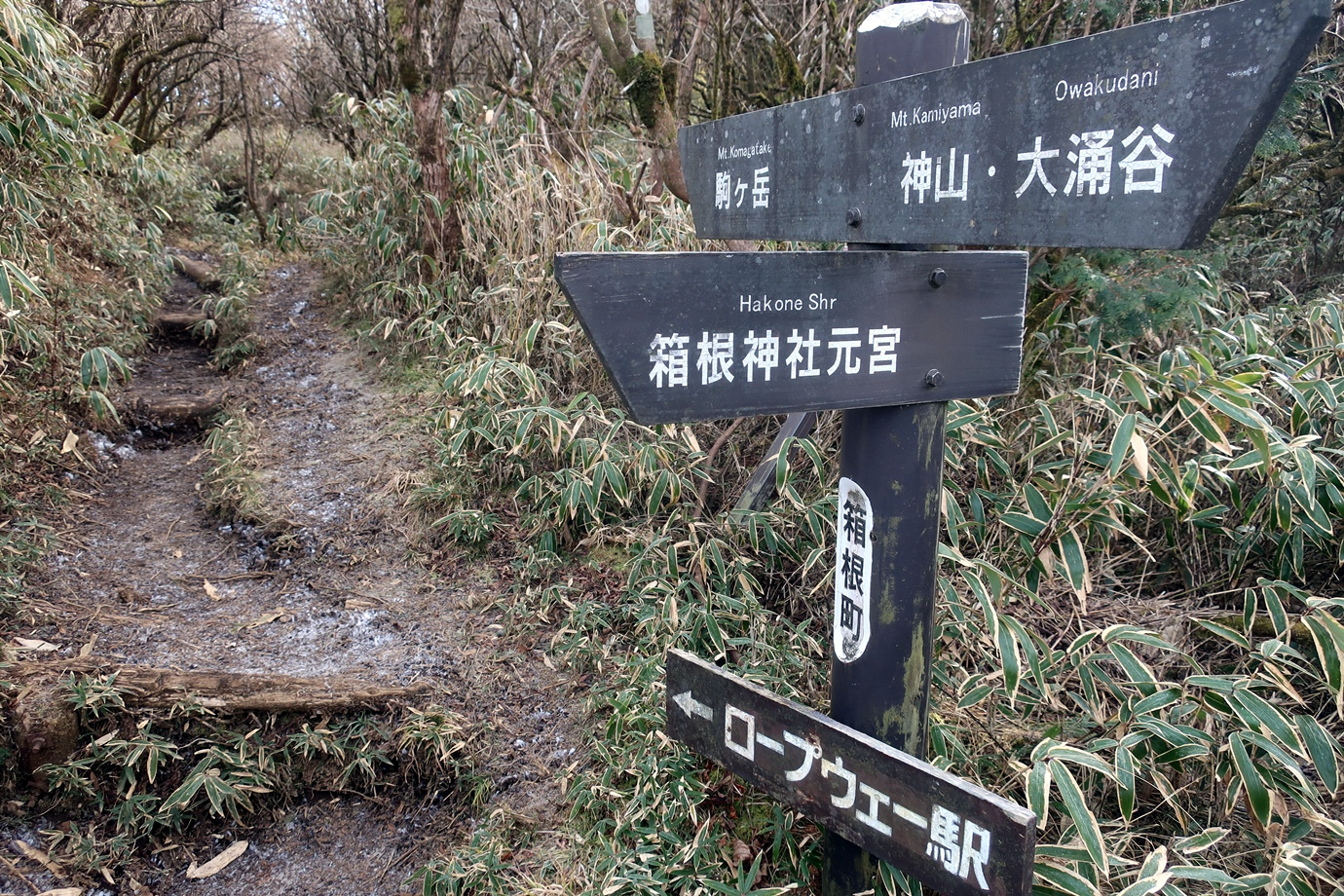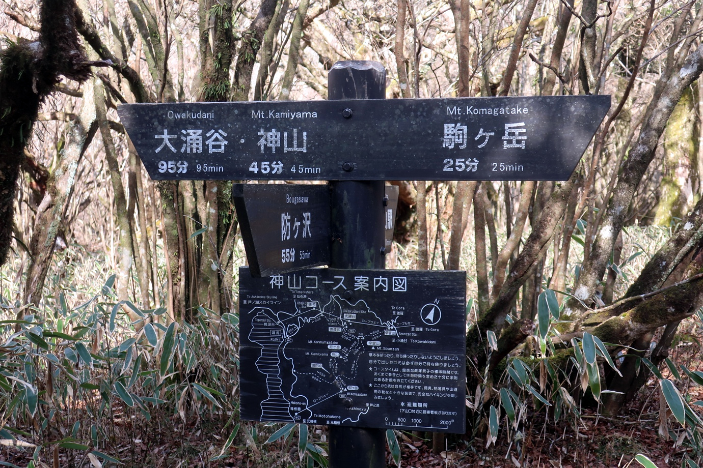 神山と箱根駒ヶ岳、どちらに行くかの分岐に来ました。実は最高峰の神山、まったく眺望がないんです。