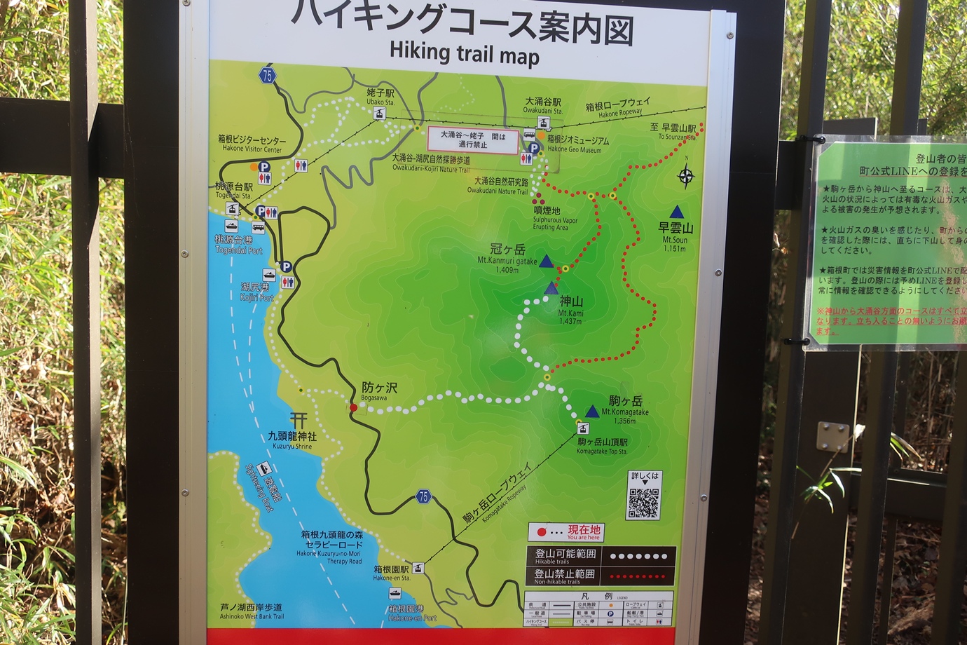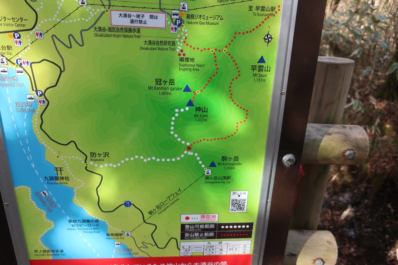 箱根園駐車場→芦ノ湖周辺公共下水道防ヶ沢中継ポンプ場→防が沢登山道起点→防ヶ沢登山口→箱根駒ヶ岳→相模湾展望広場(海ノニワ)→駒ヶ岳山頂駅