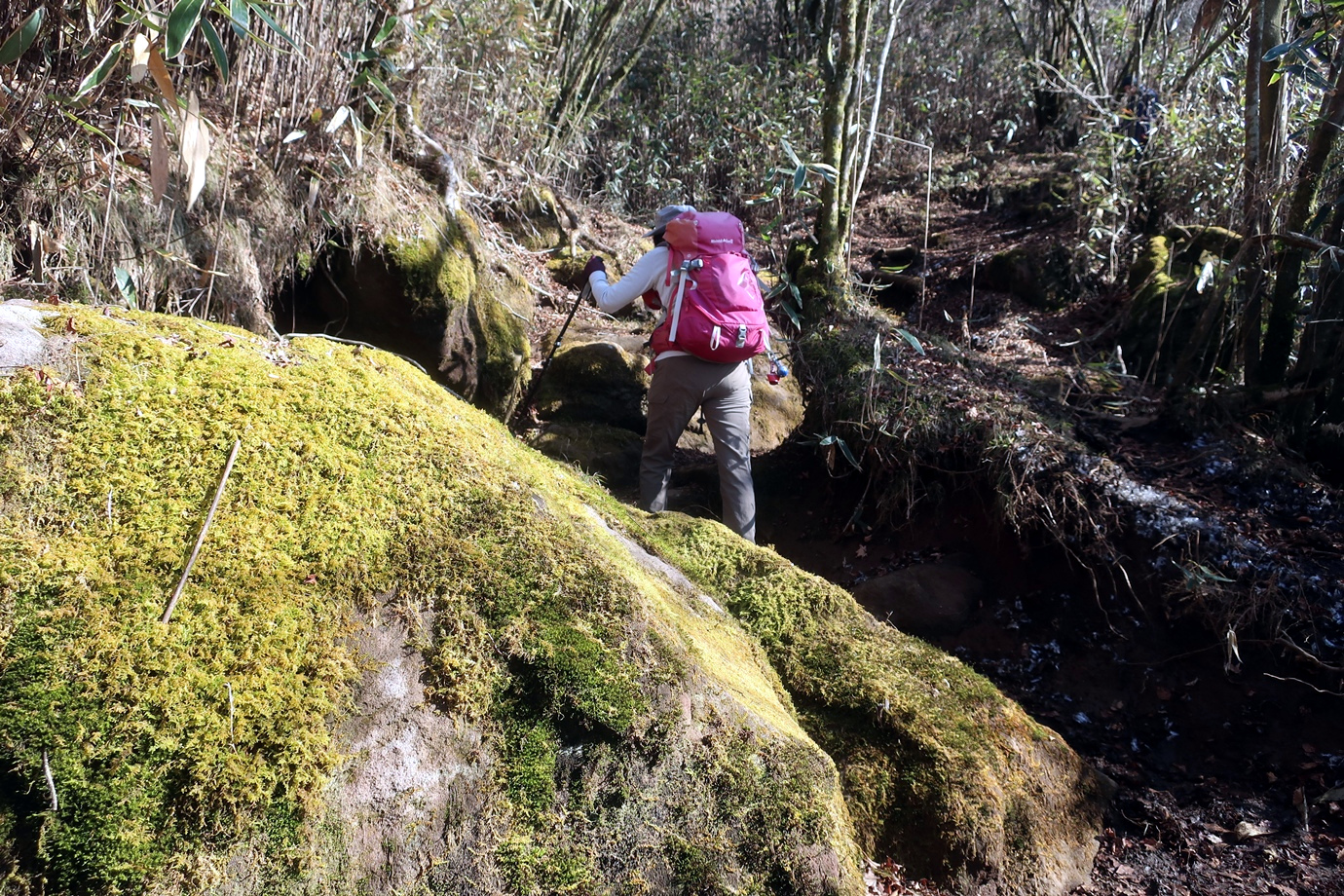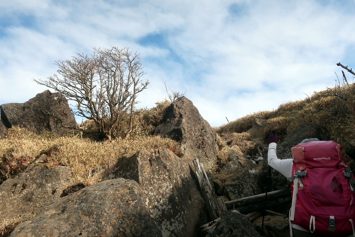 こういう大岩があるところはごくわずか。ほとんどが岩や石のない登山道です。