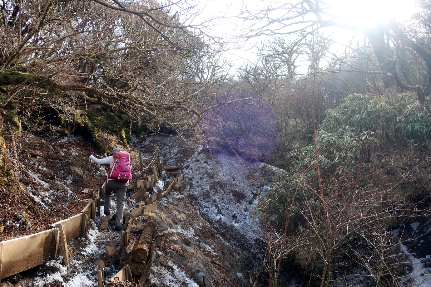 今回、下山はロープウェーを使いましたが、下りも同じ道を歩いたらさらに霜が溶けて相当神経を使ったと思います。冬場はゲイター推奨。