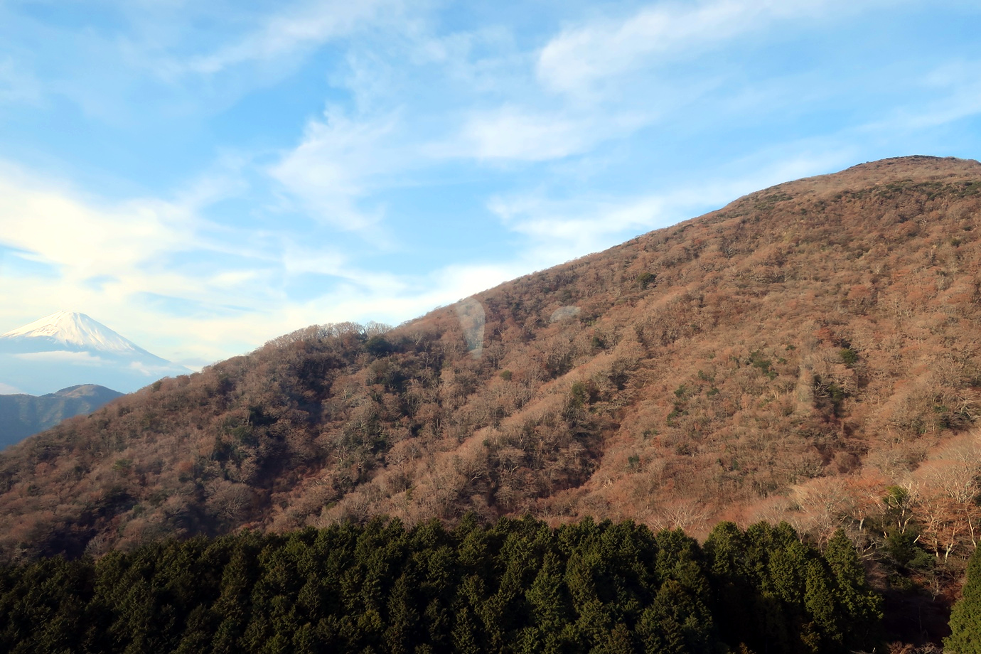 双耳峰が見えてきました。最高峰の神山と目的地の箱根駒ヶ岳です。