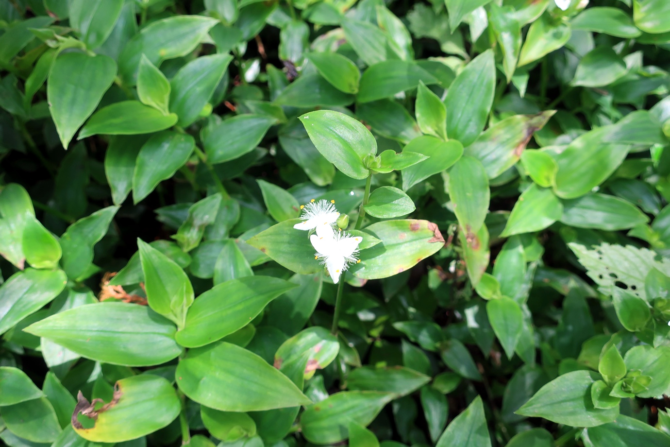 たくさん咲いていた花。画像検索したところ、トキワツユクサという花のようです。