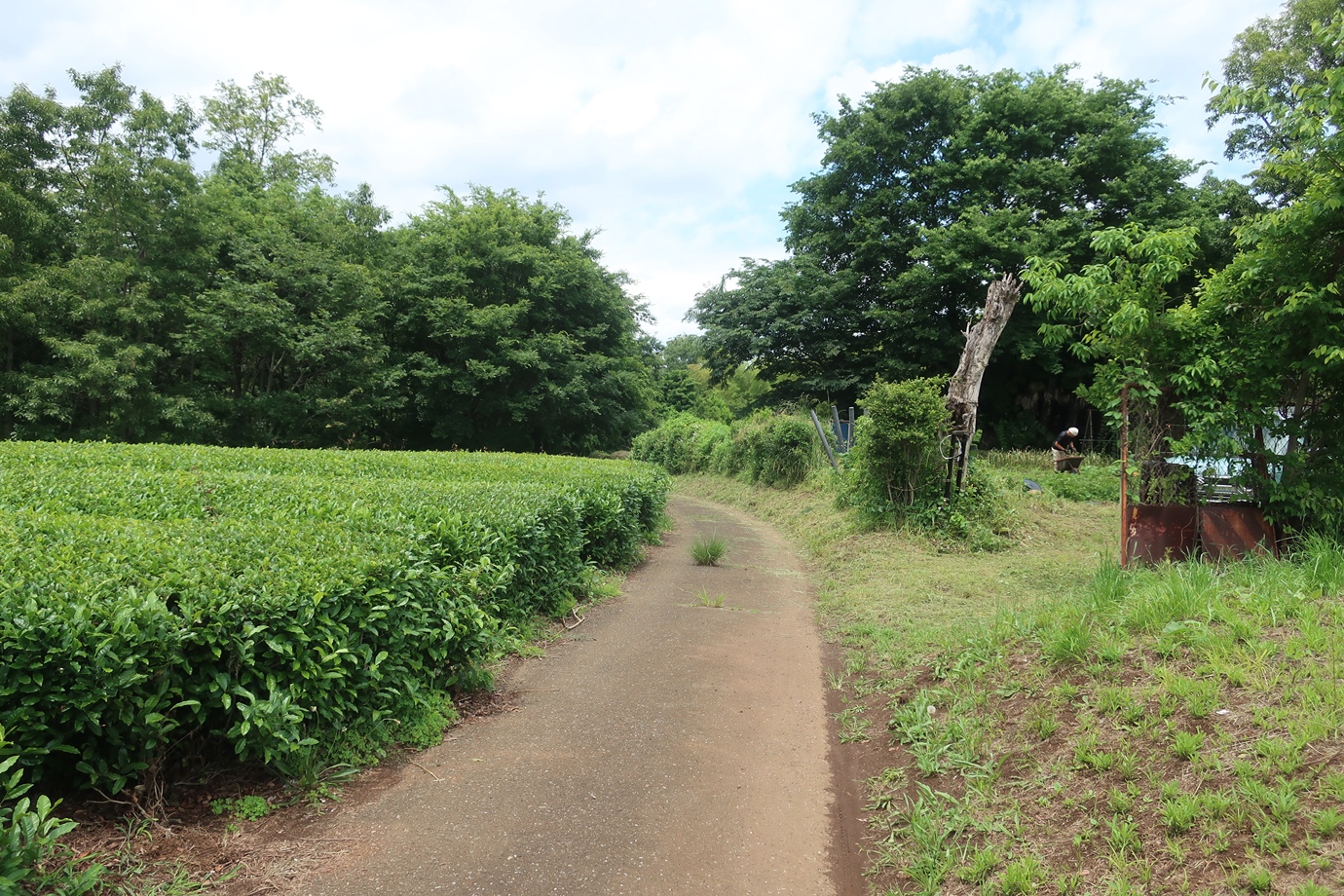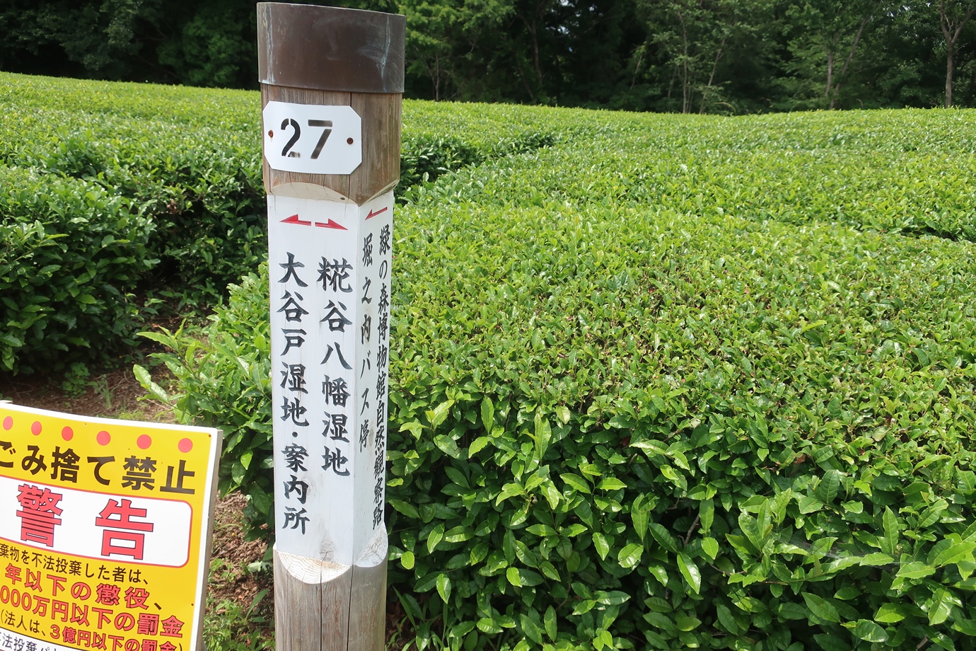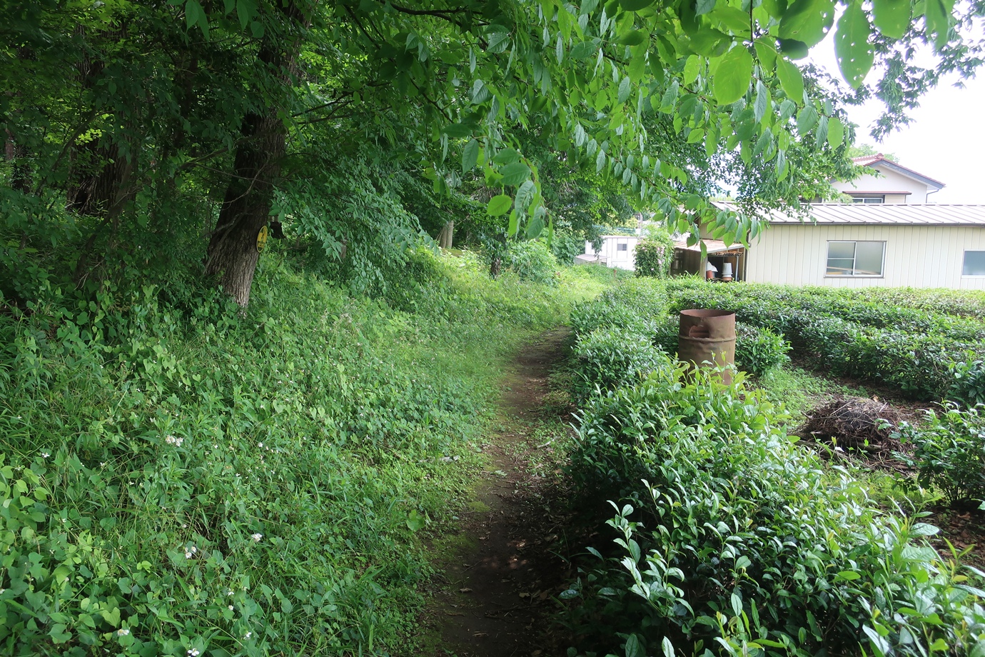 案内標識に従って茶畑の脇を通り……