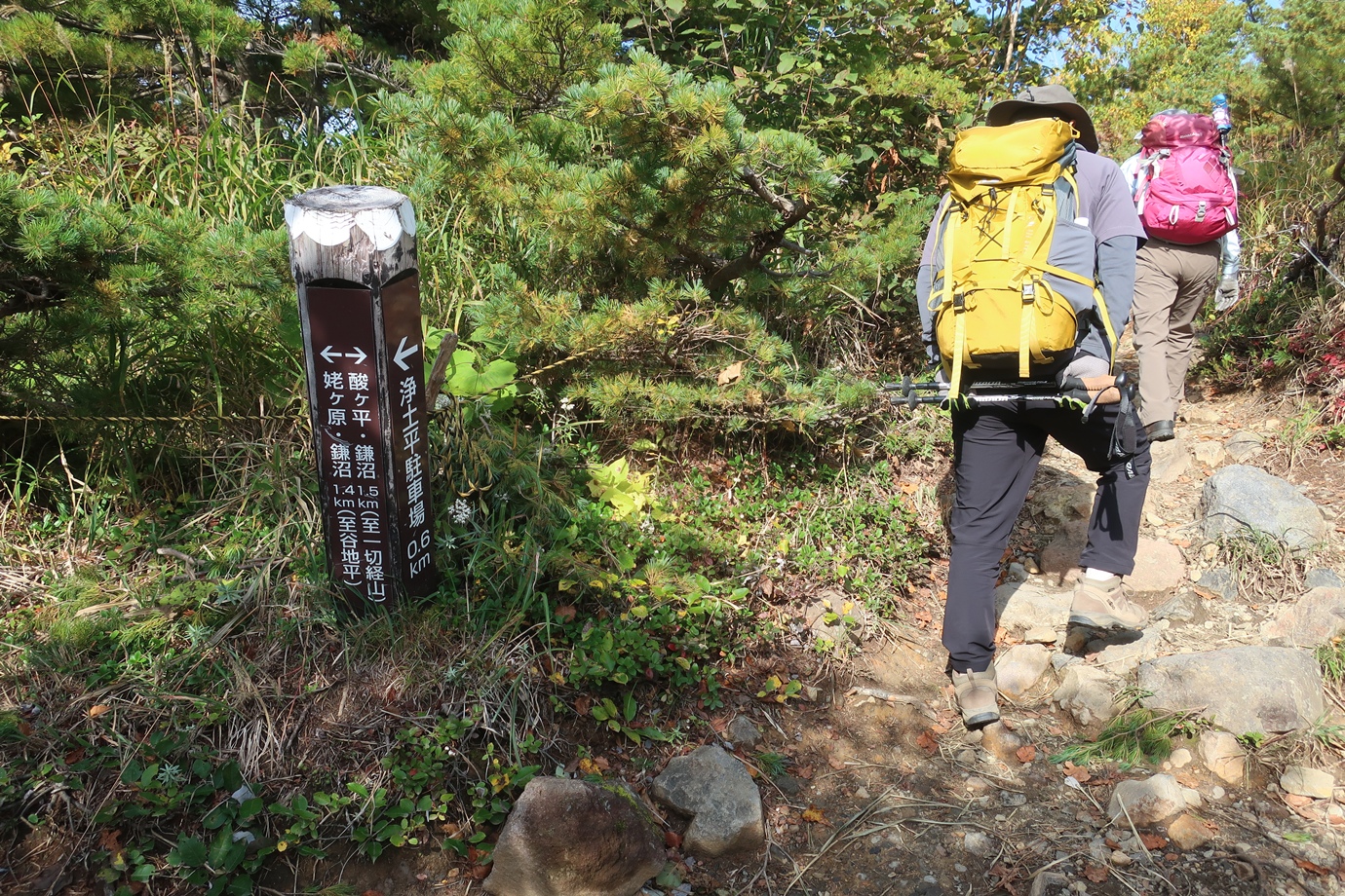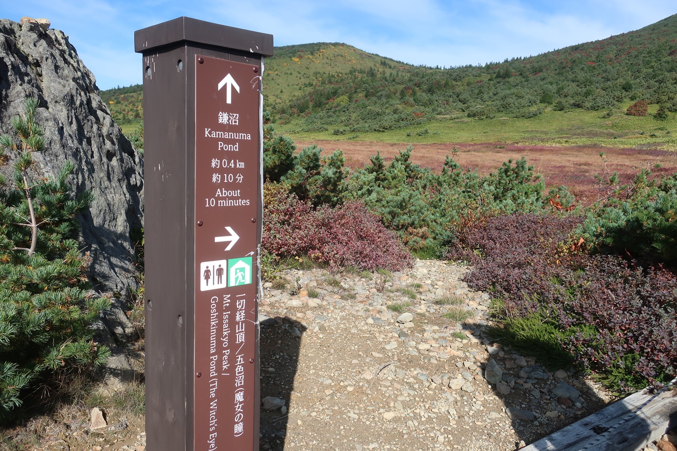 ここで一切経山方面へ。帰りはここへ戻って鎌沼周りを歩く予定。