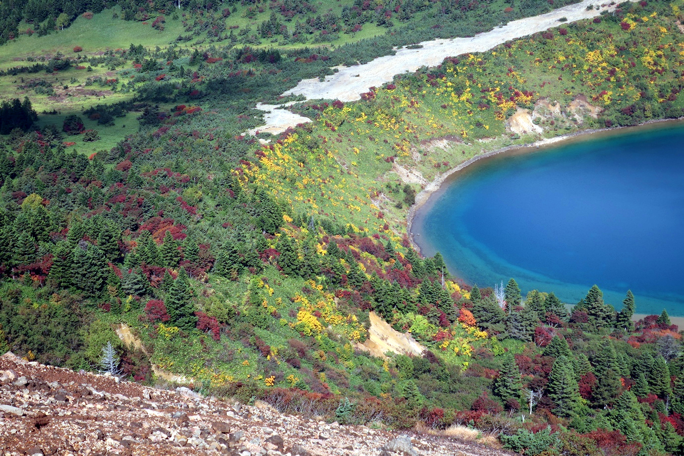 そして、山頂からさらに奥に進んだところにあるのが「魔女の瞳」こと五色沼です。