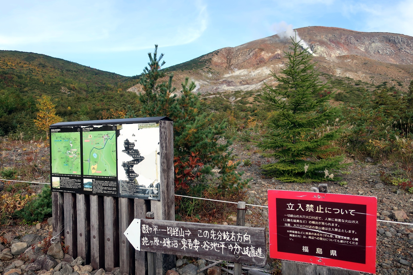 前回来たとき一切経山は全面立入禁止だったので鎌沼を散策して帰りました。山頂付近の一部はいまでも立入禁止のよう。