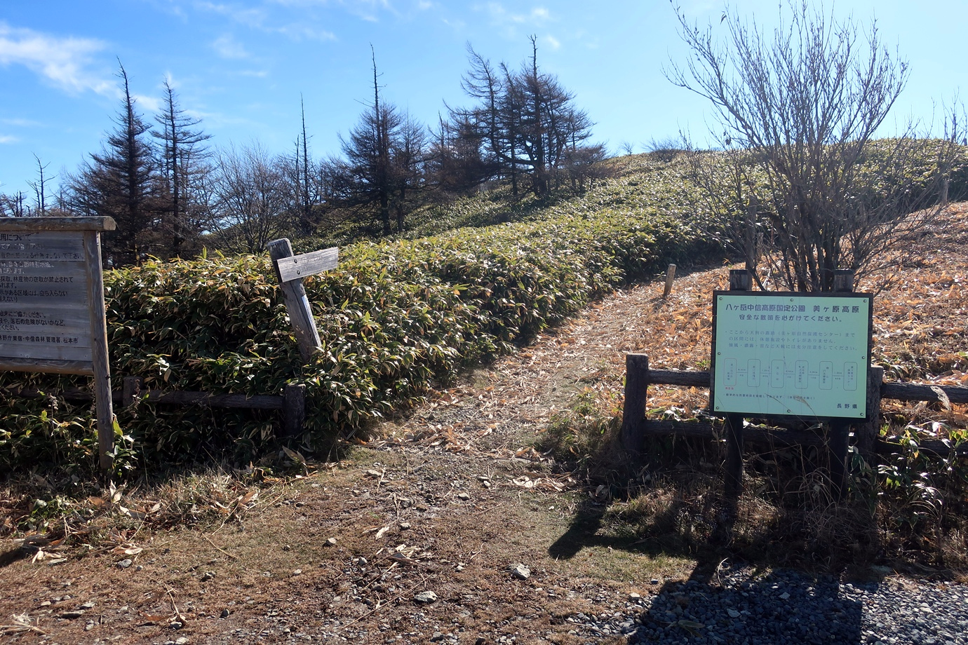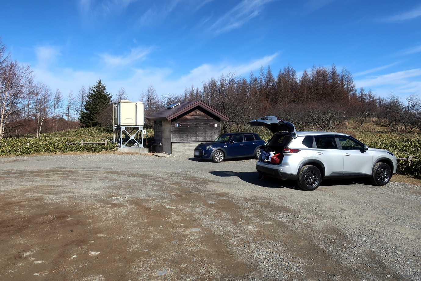 ・王ヶ鼻は美ヶ原自然保護センター駐車場を利用。こちらもトイレはありますが、冬期閉鎖中。思い出の丘駐車場からここまでの道も難しい部分はありません。