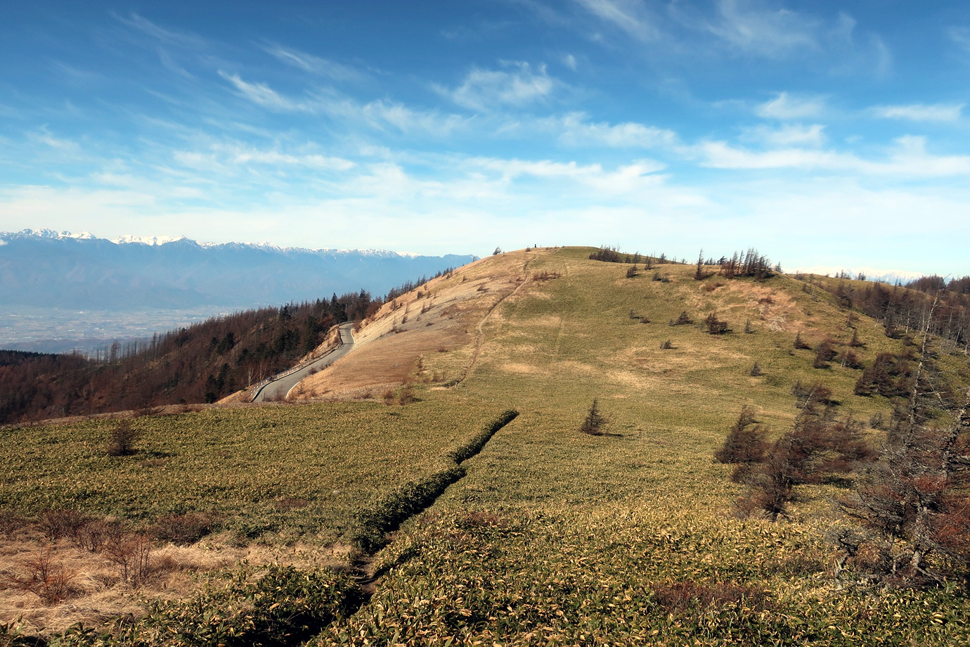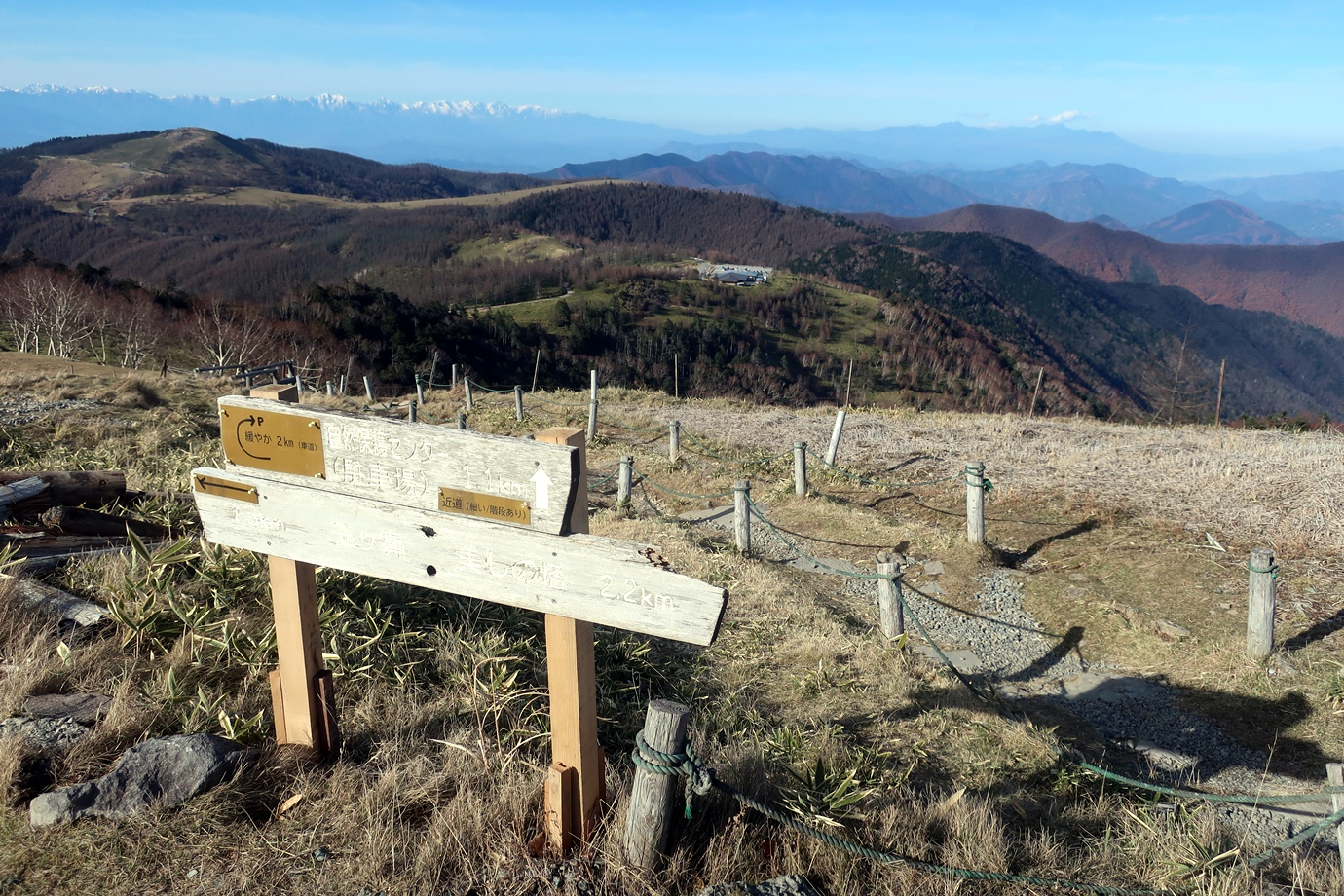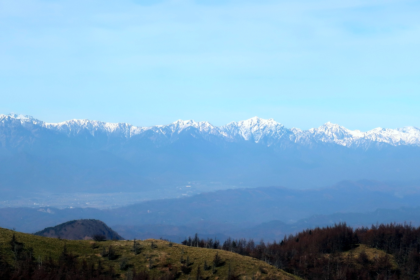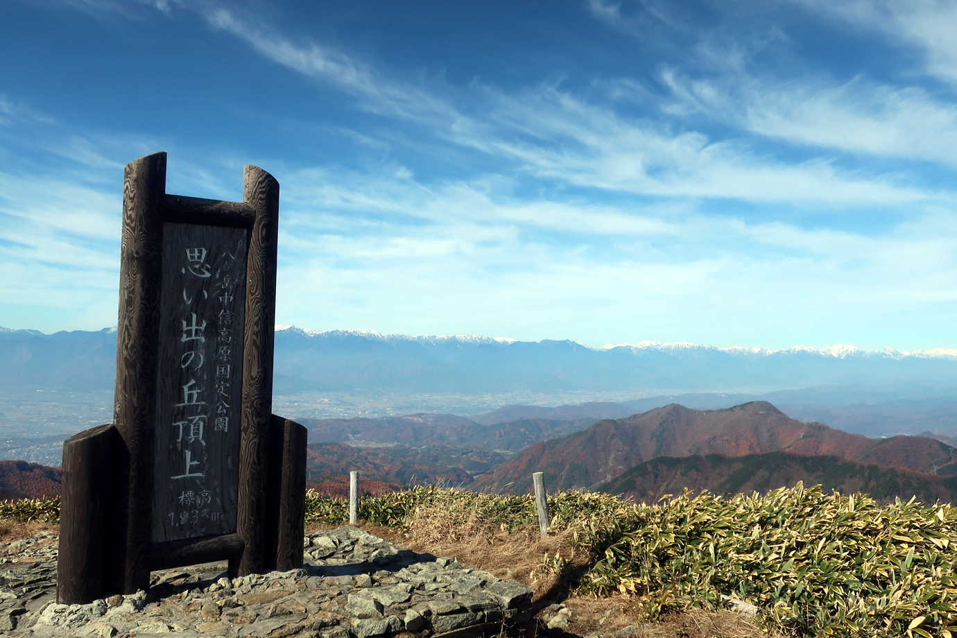 この思い出の丘、駐車場から10分かからずに行ける場所ですが、北アルプスをはじめとした周囲の景色はすごいんです。ただ、次に到着する武石峰、そして王ヶ鼻、王ヶ頭からも似たような景色を見ることができるので、ここでは割愛。