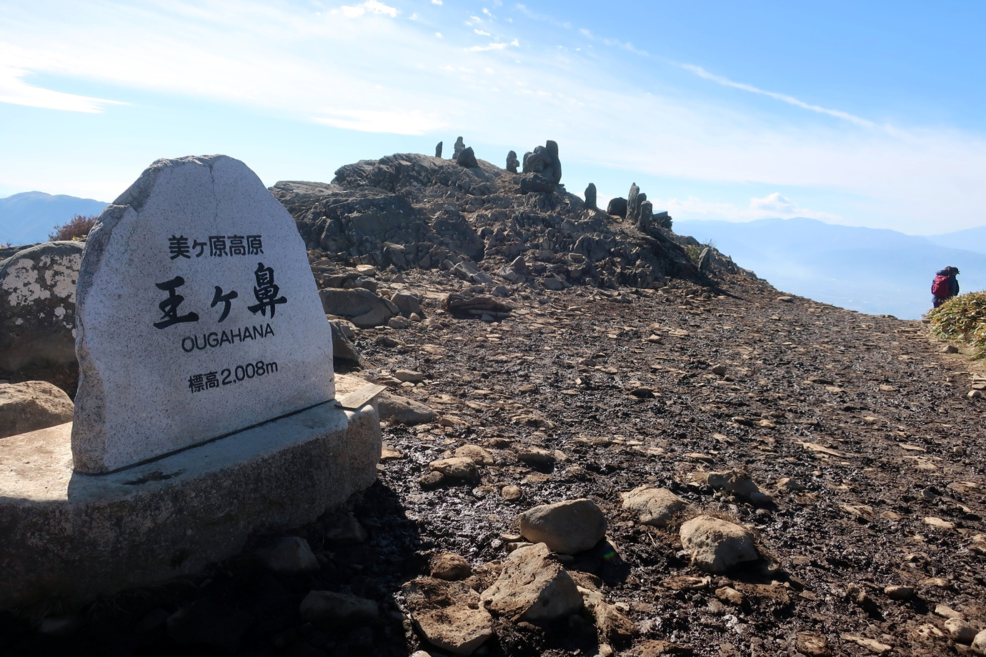 到着です!逆光で見えませんが、右端の碑に王ヶ頭と書かれています。