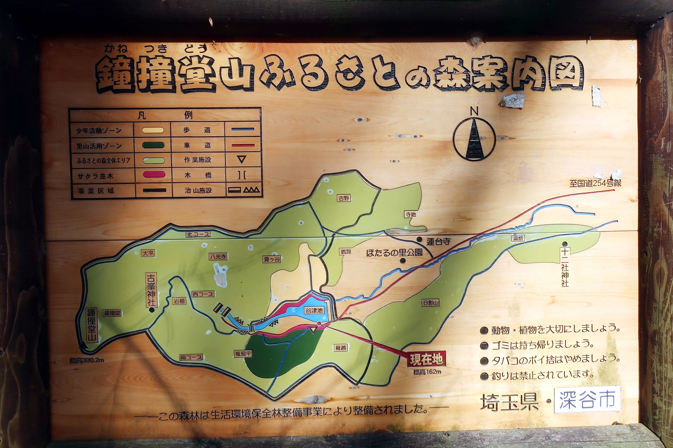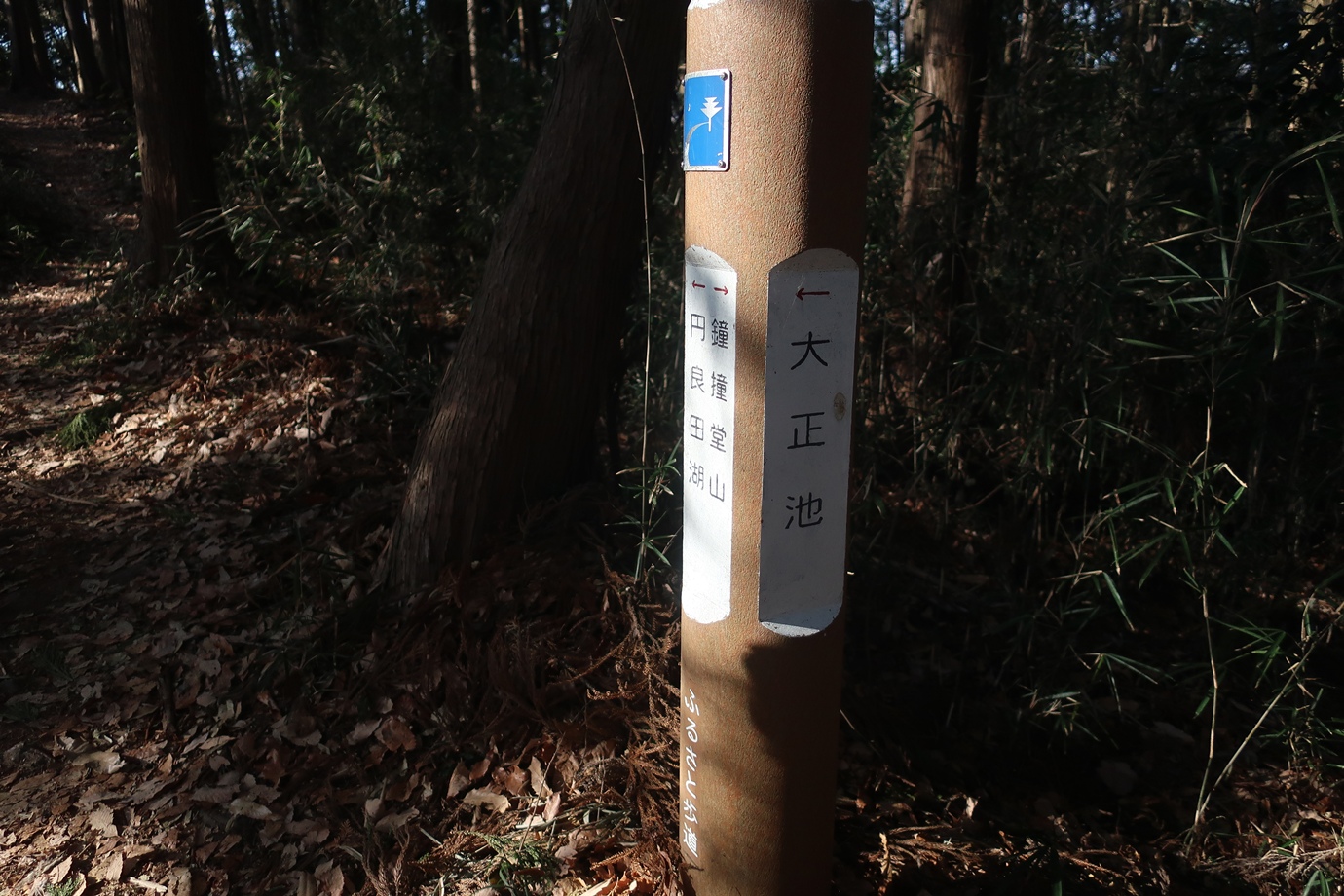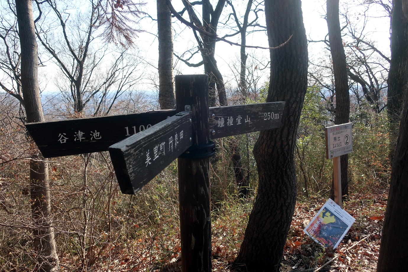 用土コース登山口駐車場→展望ルート分岐→用土分岐→鐘撞堂山→高根山→大正池→谷津池分岐→鐘撞堂山ふるさとの森駐車場→ほたるの里公園→用土コース登山口駐車場
