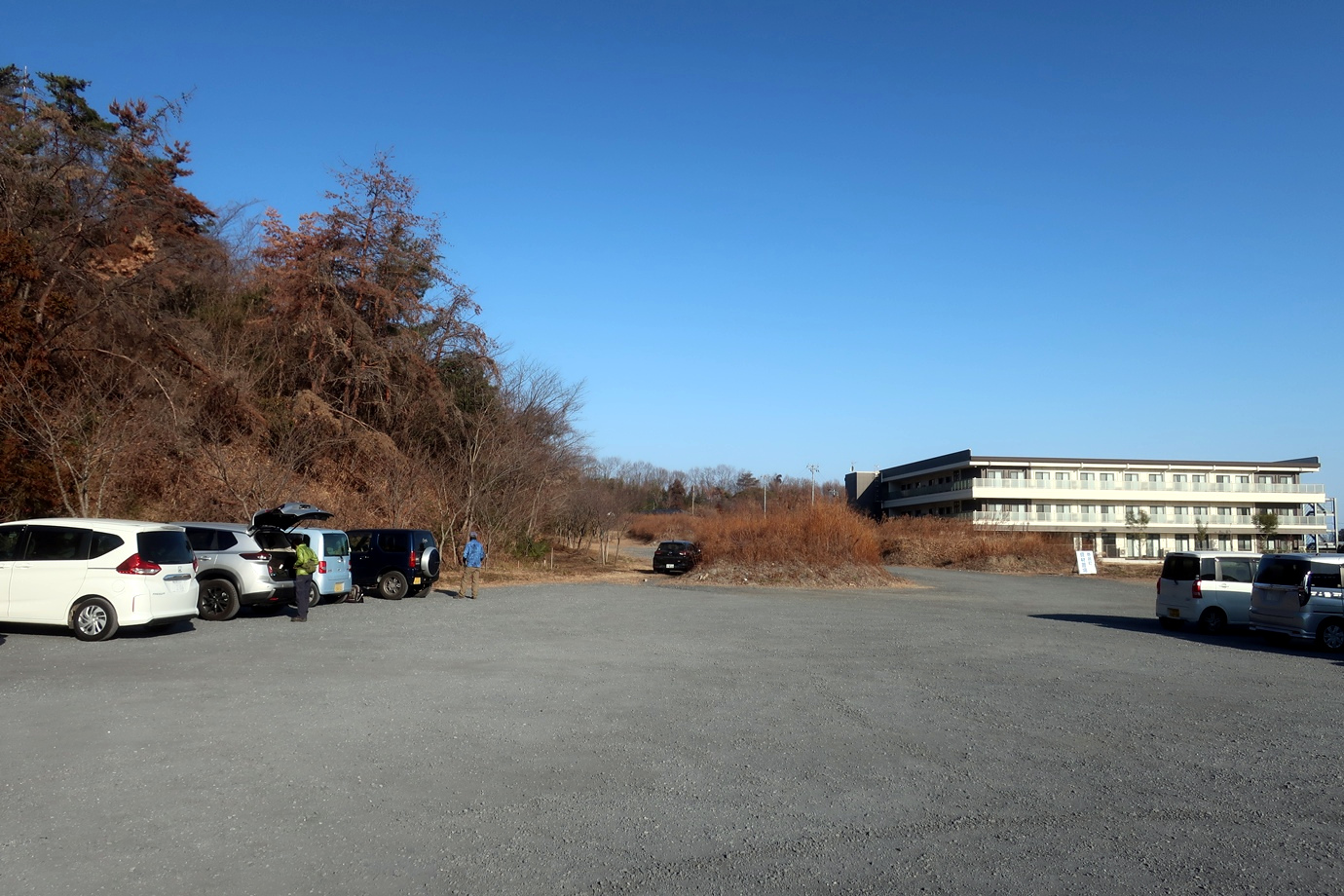 用土コース登山口駐車場です。前回はこのストリートビューでも数台の車が停まっている左側の高台に駐車しましたが、2026年1月現在、そこは駐車禁止エリアで正面の広場が駐車可能エリア。入口に図解入りの看板も設置されていました。下の写真参照。