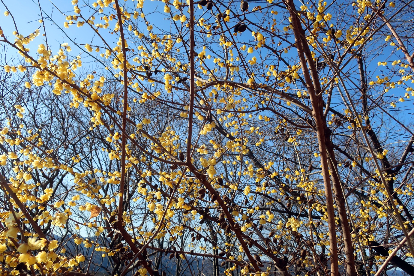 宝篋山に続き、妻が行ってない山シリーズ第二弾。 蝋梅がピークだと聞き、5年前に単独で歩いたのと違うコースを妻と歩いてみました。