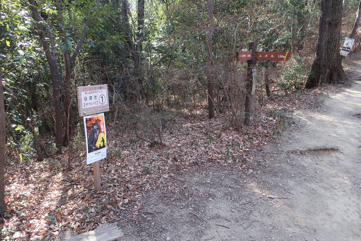 八幡山から少し下ったところにある十字路。ここを谷津池方面へ。