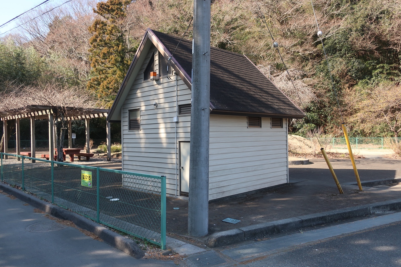 ふるさとの森の入口近くにあるトイレ。今回のコースは逆回りも楽しいと思うので、そのときはここに寄ってからスタートできますね。